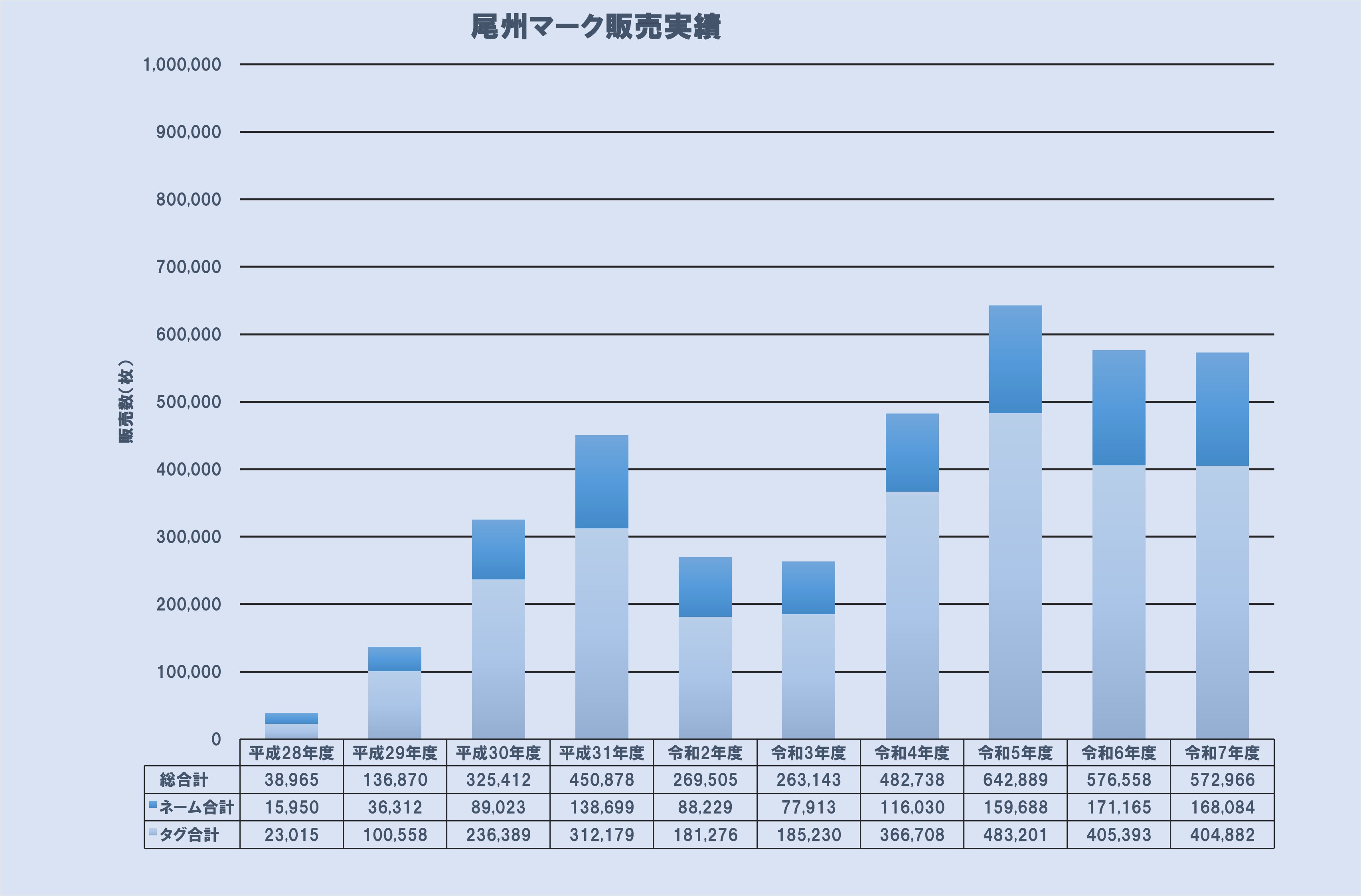 ※尾州マーク販売実績は、タグ(下げ札)、織ネーム、ピスネームの販売数の合計です。