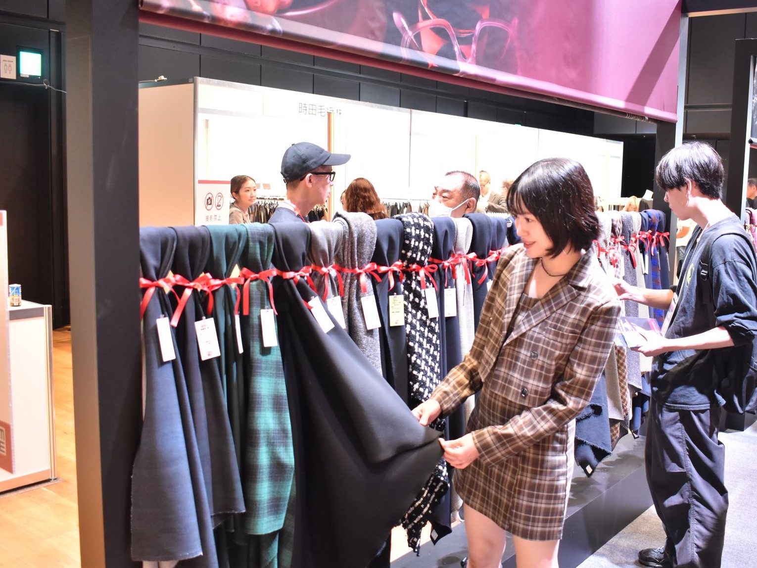 生地の傾向としては、ウール素材やウール複合素材、ツイードのほか軽く、薄い素材が人気だった。色使いではベージュなど落ち着いた系統の人気が高かった。