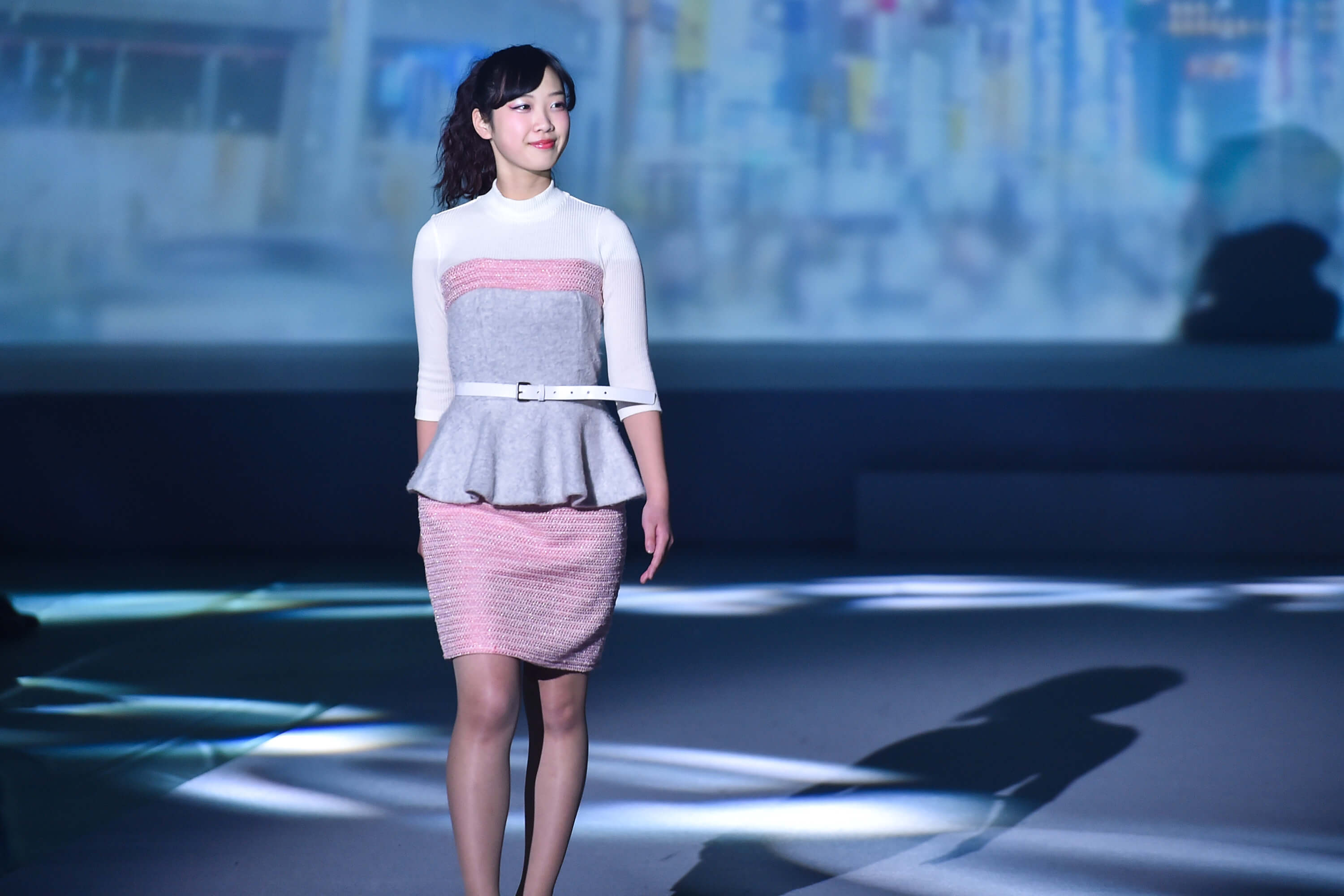 中にはふんわり可愛いデザインをテーマにした作品も。ピンク×グレーの千鳥柄の珍しいツイード生地や、織り地やニットなど素材の違う白い生地など、生地自体のデザインの高さも感じられる衣装ばかりです。