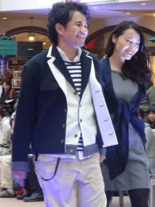 | グランプリ(賞金10万円) <+α(プラスアルファ)> 名古屋モード学園 ファッションデザイン学科 徳田 有香 (男性モデル:PLUS a オーナー 高瀬達也氏) (素材提供メーカー:㈱イチテキ、長大㈱) |
