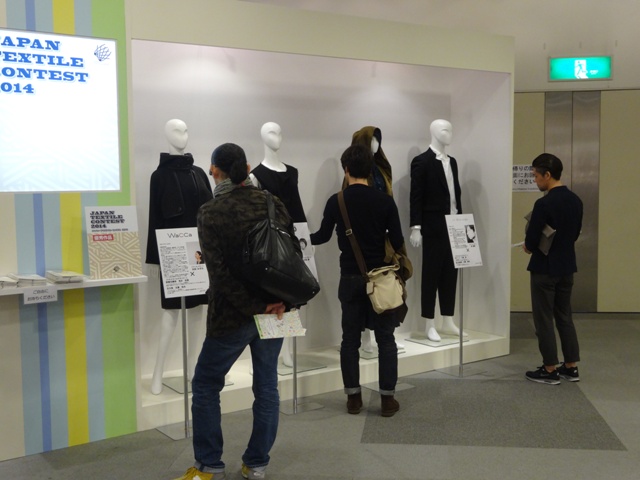 今回の展示会ではジャパン・テキスタイル・コンテスト2014の優秀作品展を併催し、展示した優秀作品20点と デザイナーとのコラボにより製作した衣装8点にも来場者の視線が注がれた。